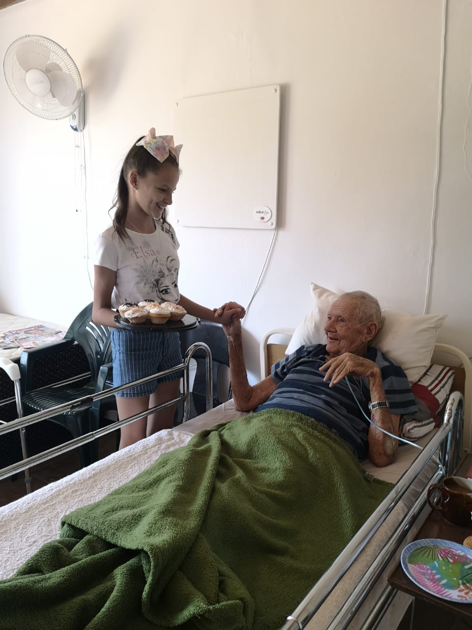 Chene and Jessica are in Baanbreker Primary School. They will be participating in Mr & Miss Banie this month. As part of the participation, they are required to spend at least 2 hours helping or making someone happy by, for example, visiting a children’s home or handing out food to the homeless, to teach them how to give their time to their community. Chene and Jessica felt Oumie and the other senior citizens would love cupcakes. They enjoyed it so much to see how happy it made the eveybody.